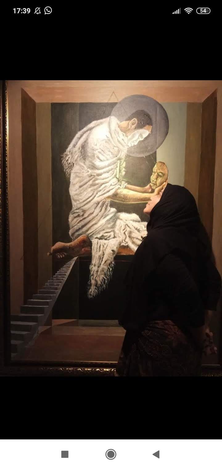 Sedangkan sosok yang menghilang menjadi keringat di dahi menandakan bahwa refleksi ini tidak berhenti di kepala, tetapi benar-benar menubuh—pengalaman psikologis yang nyata.